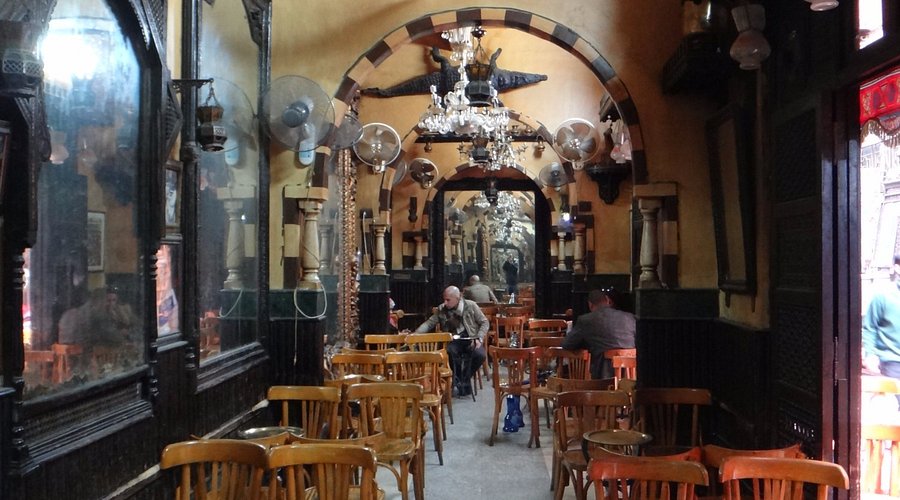The atmosphere is refined yet welcoming: air-conditioned interiors provide relief from the heat, with mirrored walls, ornate ceilings, and waiters in tarboosh hats adding to the charm. It’s less chaotic than El Fishawi, making it ideal for quiet conversations or reading. Live traditional music often plays in the evenings, enhancing the cultural vibe.